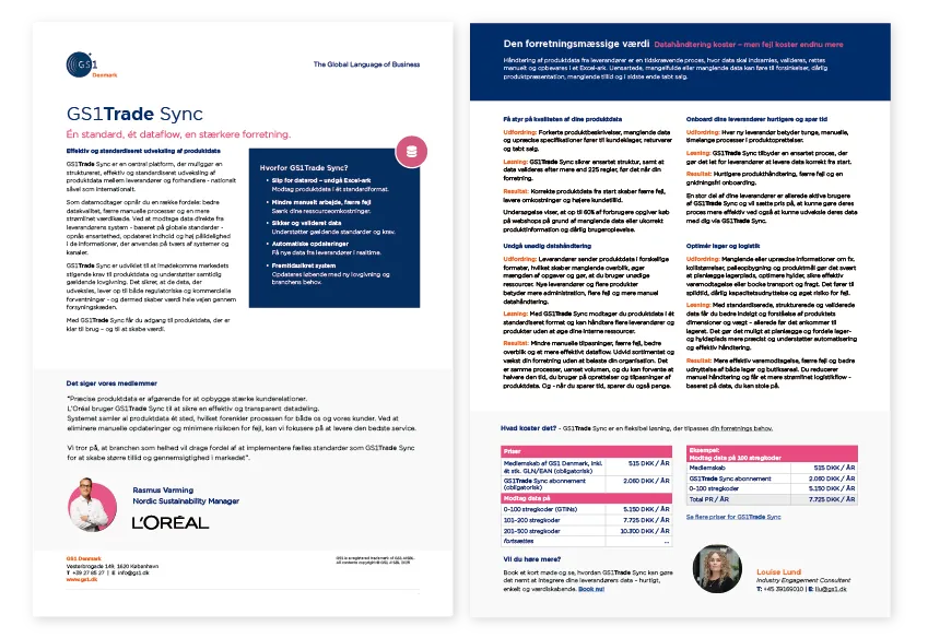 Den er nem at videresende og printe ud, hvis du eller en kollega, kunde og andre interessenter har brug for konkrete eksempler på, hvordan GS1Trade Sync som platform kan skabe værdi for jer.